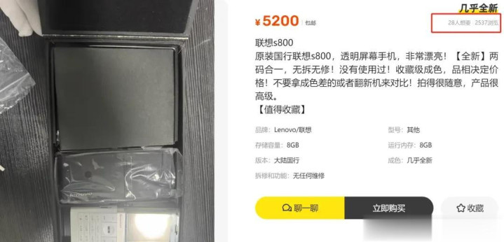联想S800当年卖两千五百多,如今15年过去了,我照例去闲鱼搜一下,找到一个全新未使用的,整套包装和配件都在,卖家说两码合一,并开价5200元,吸引了两千五百多人浏览,会有人买单吗?
