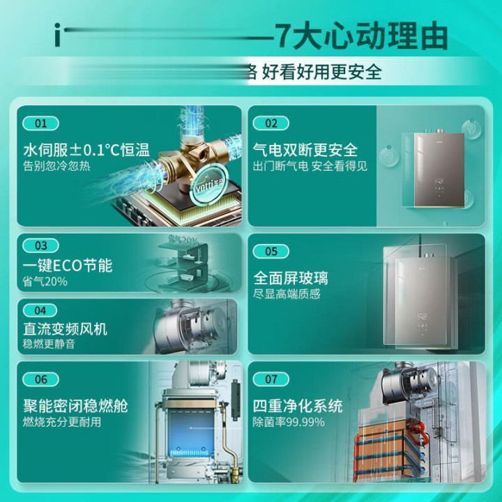 3.安全配置全面:从气电双断保护到CO防护系统,覆盖燃气泄漏、干烧、冻裂等全场景风险,整机质保期长达8年。