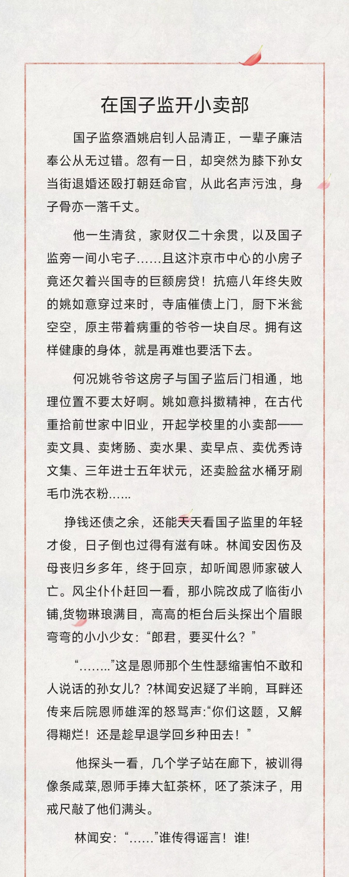 全球好,我是文旦悦推文,今天给全球保举松雪酥的《在国子监开小卖部》演义,有可爱的不错点赞保藏共享哦喔~