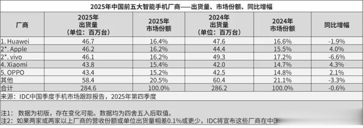 根据IDC的数据,2025年国内手机市场:华为出货量4670万台,苹果出货量4620万台,vivo出货量4610万台,粮厂出货量4380万台,OPPO出货量4340万台。将出货量和高端手机占比结合,我们可以计算出,苹果高端手机出货量超4500万台,华为高端手机出货量超2600万台,安卓4大品牌都不足1000万,粮厂约为870万,vivo约为780万台,米兰appOPPO约为520万台。