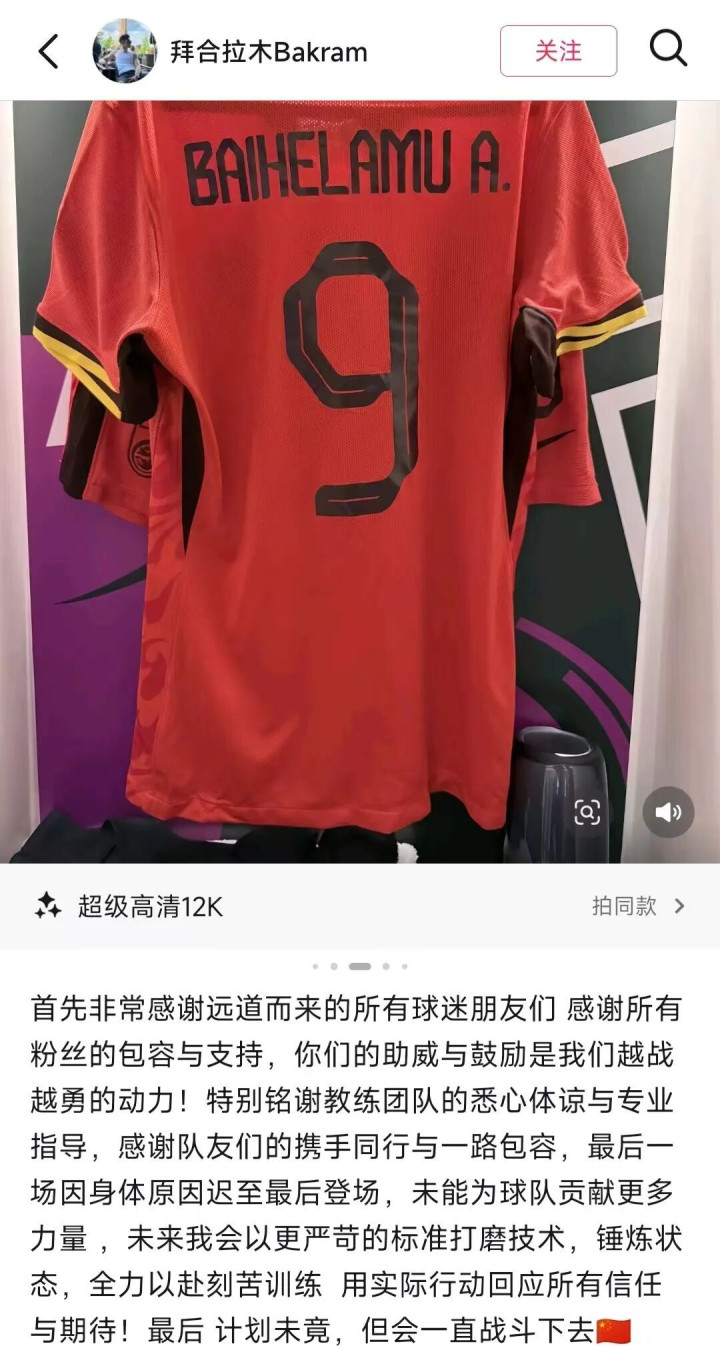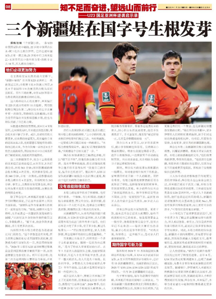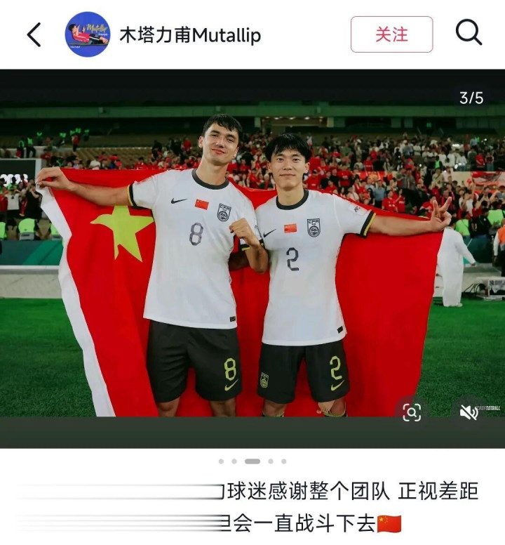 出场较少的木塔力甫仍在为迈进国足大门而努力。“这个梦想还没有实现,因为我现在踢的是U系列国家队的比赛,要想成为成年国家队的一员,我还得继续努力。”2024年卡塔尔U23亚洲杯暨巴黎奥运会亚洲区预选赛开赛前不到一周,因伤退赛曾让他备受打击;两年后在沙特,他第二次为这项洲际大赛而全力备战,并且如愿以偿。