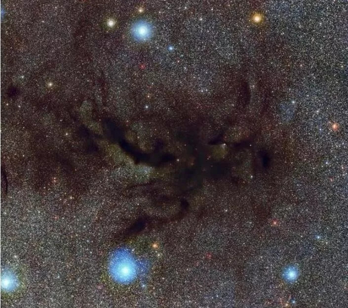 在我们的银河系中,存在着许多黑暗的多尘分子云。这些分子云是宇宙中恒星形成的“摇篮”,会随着时间的推移在自身引力作用下坍塌,并孕育出新的恒星,其中密度最大的区域会形成质量巨大的恒星。这些分子云具有很强的遮光性,即便在它们身后存在大量的恒星,星光也无法穿透这些尘埃,会被尘埃吸收或散射。从地球观测,这些分子云就呈现出黑暗的区域,仿佛夜空中的“空洞”。