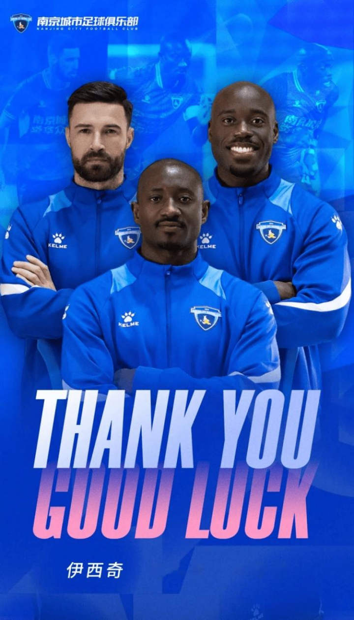 南京城市足球俱乐部衷心感谢奥格布、卢佩塔、伊西奇的付出与奉献,祝愿未来个人生活和职业道路一切顺利!
