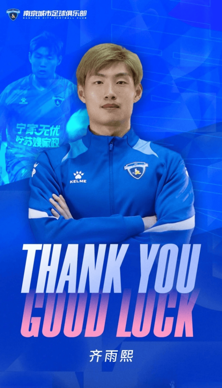 南京城市足球俱乐部衷心感谢齐雨熙的付出与奉献,真诚祝愿他在新阶段一切顺利,再创佳绩!