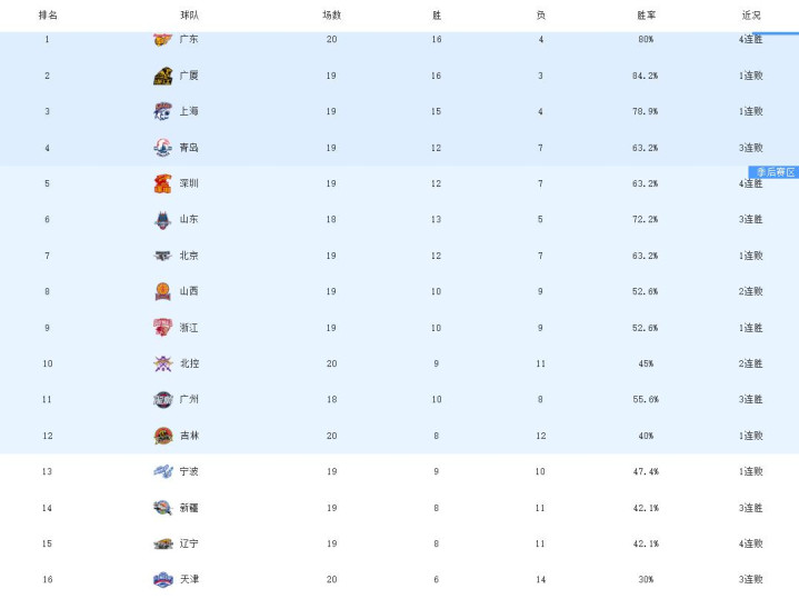 一、球队排名重返联盟第一,给到竞争对手不小的压力。如果广厦队和上海队本轮输球的话,那么广东队将排名第二。