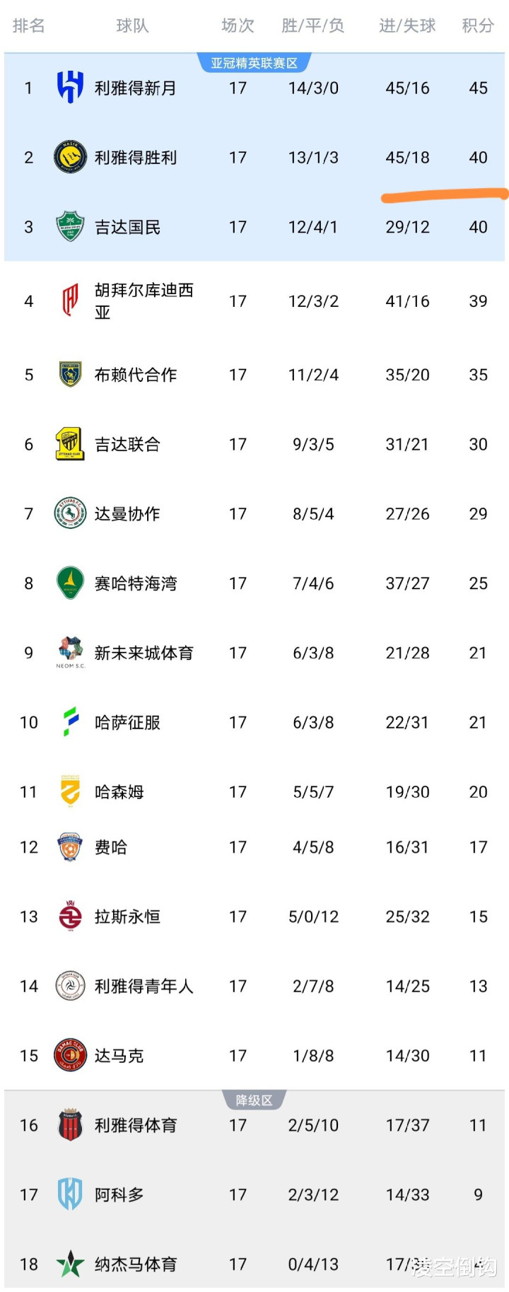 在C罗率队1-0击败布赖代合作队之后,利雅得胜利队积分上涨到了40分,排名也上升到了第二,然后仅距离领头羊利雅得新月队5分,可以看到利雅得胜利队依然有较大的争冠希望。而布赖代合作队输球之后积分停留在35分,米兰app官方网站继续排名第5,落后利雅得胜利队5分。而哈森姆赢球之后,积20分排名第11,领先降级区9分,保级基本稳了。达马克输球之后积11分排名第15,保级压力巨大。吉达联合击败阿科多之后,积分上涨到了30分,仍距离榜首的利雅得新月队15分,吉达联合争冠基本没戏,而阿科多队输球之后积9分排名倒数第二,保级任重道远。
