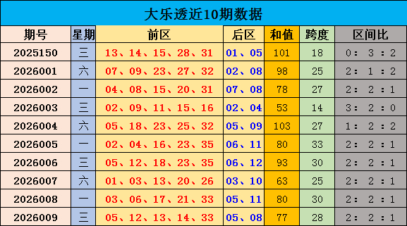 米兰app 010期安阳大乐透预测奖号:和值分析