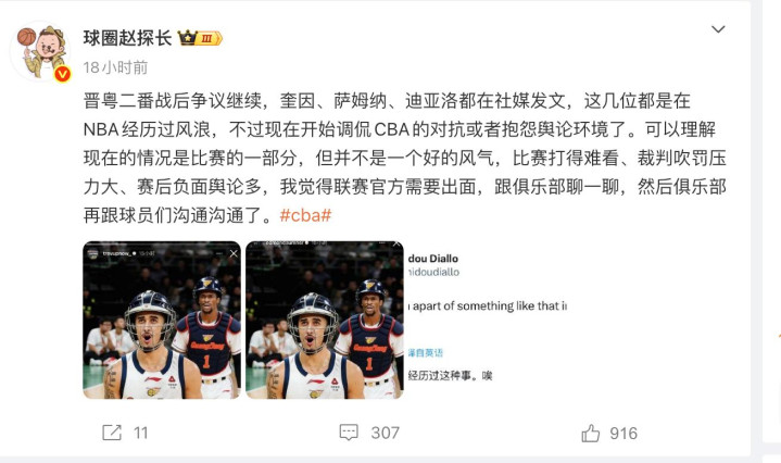 对于广东男篮的外援来说,他们非常不满山西男篮的一些比较粗野的防守。而对比之下,我们看到山西队的外援迪亚洛则是不满意自己被频频遭到针对。所以我们也看到到目前双方比赛的都在社交平台硬杠,而CBA联盟更是重罚迪亚洛的一些争议行为。我们来详细了解一下到底是什么情况。