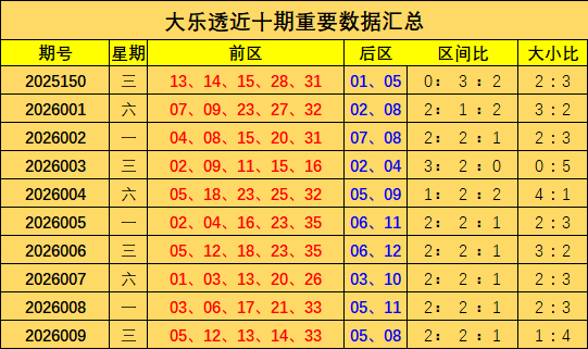 大小比分析:上期前区开出大码球1个,开出小码球4个,近10期大码球21个,小码球29个,整体来看小码球表现较好,本期预测小码球开出次数较多,推荐大小比2:3。