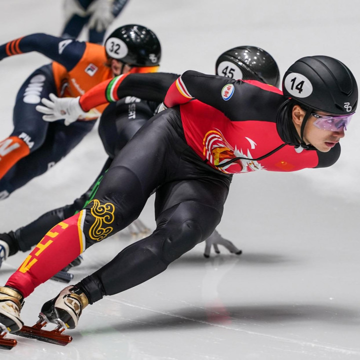高亭宇在冰场上疾驰而过